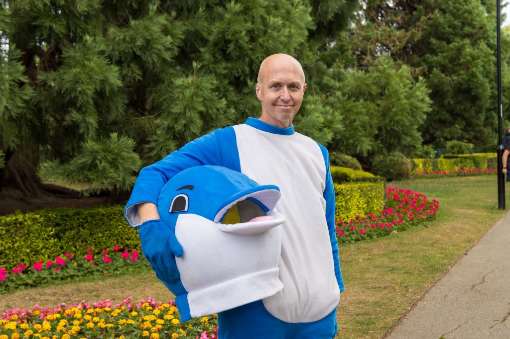 If that includes doing your personal best to raise awareness by running round as a dolphin, while also making people smile, well that’s just flipping brilliant.
