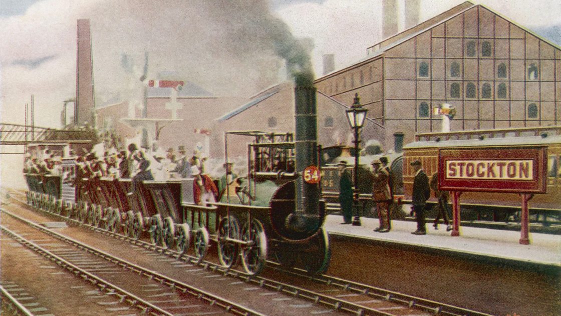 On the 27th of September, 1825, the Stockton & Darlington Railroad was opened, its primary purpose to link the collieries in West Durham, Darlington and the River Tees at Stockton. Large crowds witnessed George Stephenson at the controls of the world’s first locomotive.